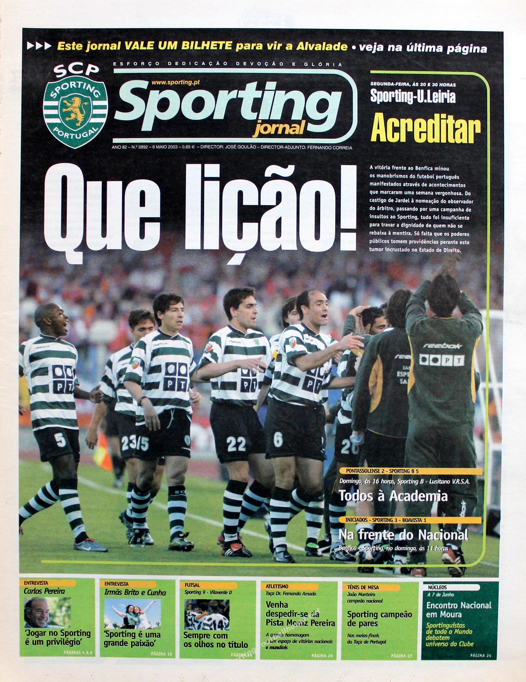 Vitória no derby no Jamor (casa emprestada do Benfica) por 2-1 em jogo do Campeonato.