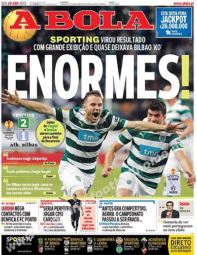 Vitória na 1ªmão da meia-final da Europa League frente ao Athletic Bilbao (2-1).