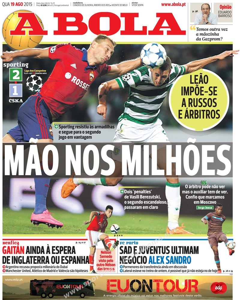 Vitória (2-1) escassa sobre o CSKA Moskva para o play-off da Champions League num jogo em que o árbitro fez vista a grossa a (pelo menos) um penalty a favor do Sporting.