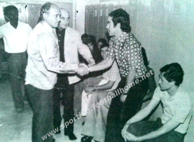 Na foto (a cumprimentar Carlos Pereira), a ser apresentado aos jogadores no balneário.
